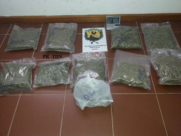 En el interior del rodado viajaban tres personas de sexo masculino, de nacionalidad brasileña, encontrándose en el vehículo un arma de fuego, municiones, y acondicionados en la valija, 10 bolsas conteniendo marihuana, con un peso de 2005 gramos, así como una balanza de precisión.