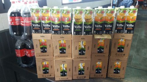 La mercadería donada consistió en: Jugos de fruta, frascos de café soluble, tubos de pasta dental, jabones de tocador y refrescos.