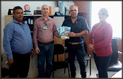 Os representantes da celulose Riograndense, durante a visita, fizeram de forma simbólica a doação de 3.000( três mil) cadernos e 10.000(dez mil) folhas de ofício, sendo que o prazo de entrega do material é de no maximo dez dias.