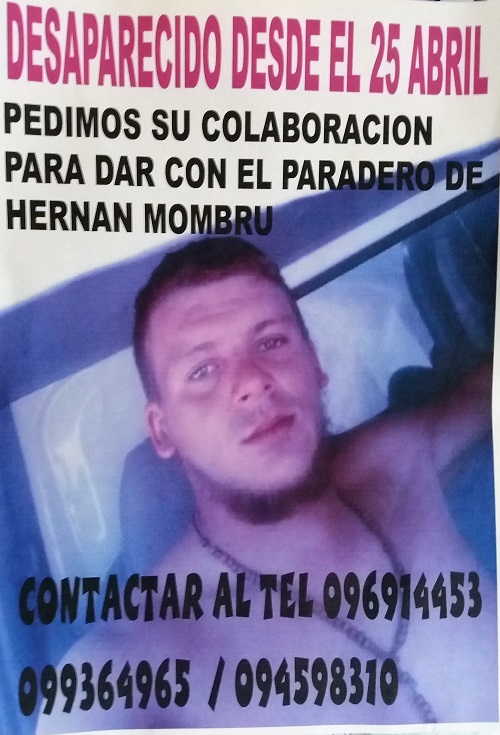 Se trata de Hernan Mombru, de 26 años. De acuerdo a familiares, durante la segunda quincena del mes de abril vino a la ciudad de Chuy a buscar trabajo. Se comunicó los primeros días pero luego desapareció sin dejar rastros. Su celular ha permanecido apagado desde entonces.