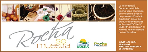 En el marco del apoyo que la Dirección General de Producción y Desarrollo de la Intendencia Departamental de Rocha, brinda al sector artesanal, tiene el agrado de invitar a todos al evento de presentación de la 13ª exposición anual de productos artesanales rochenses, «Rocha se Muestra». En el Atrio de la Intendencia Departamental de Montevideo.
