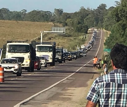 Tras reunirse en la Aduana Vieja de La Coronilla, intersección de Rutas 9 y 14, decenas de camionetas y autos circularon por la Ruta 9 a paso de hombre.