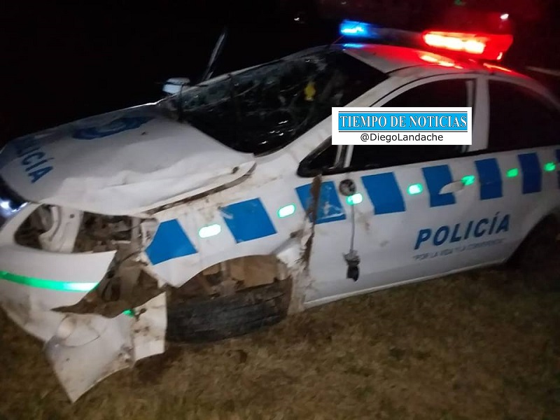Leyendo: Un móvil policial volcó en Ruta 14 Km 491