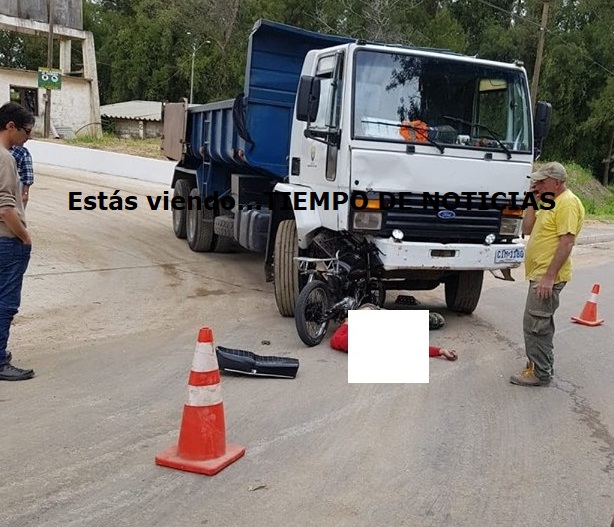 De acuerdo a datos obtenidos por Tiempo de Noticas, el motociclista no llevaba casco y aparentemente adelantó otro vehículo justo sobre la intersección donde venía el camión, topándose de frente con el pesado rodado.