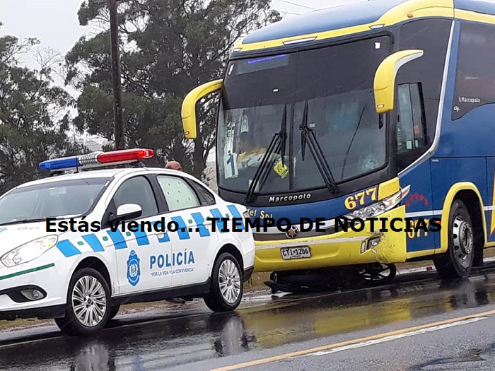 Este miércoles al mediodía, una moto que circulaba por el camino vecinal de la cárcel de Rocha ingresó a ruta 9 justo en el momento que venía un ómnibus de Rutas del Sol, en sentido Chuy – Rocha.