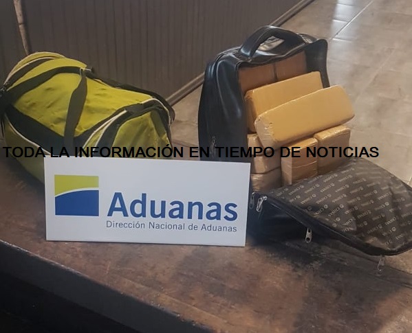 Este sábado de madrugada, aproximadamente a las 5 am, funcionarios aduaneros apostados en el resguardo central de Chuy revisaron un ómnibus de transporte de pasajeros, que tenía como destino Montevideo, y encontraron dos bolsos con más de 20 kg de marihuana acondicionada en ladrillos.