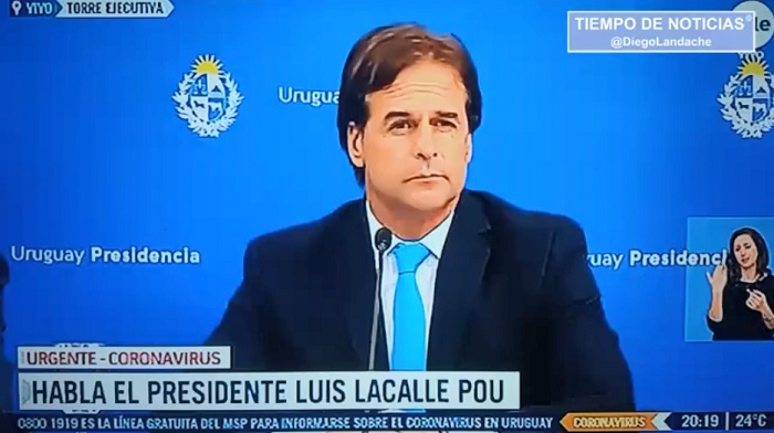 El mandatario dijo que Uruguay ha tomado «medidas de aislamiento social de acto impacto» que van «más allá» de lo que ha pasado en otros países, y repasó varias de las medidas adoptadas desde que el viernes 13 se confirmaron los primeros casos de coronavirus.