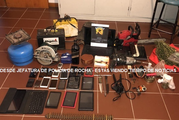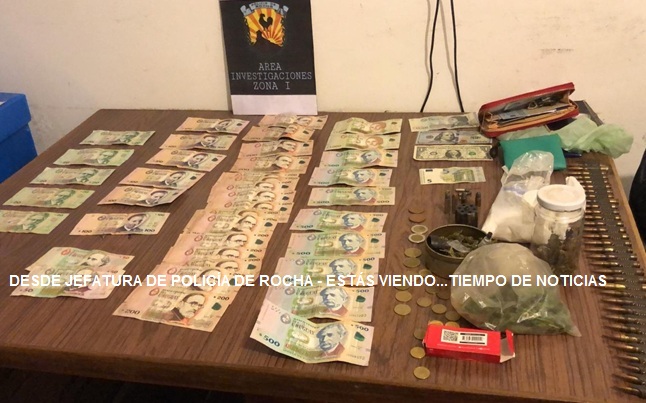INFORMACIÓN DESDE JEFATURA DE POLICÍA DE ROCHA – En una finca de la ciudad de Rocha se incautaron envoltorios con sustancia vegetal que impresiona a marihuana y con sustancia blanca, varios cartuchos de arma de fuego, dinero en efectivo y efectos que figuraban como hurtados, lo que permitió esclarecer varios ilícitos.