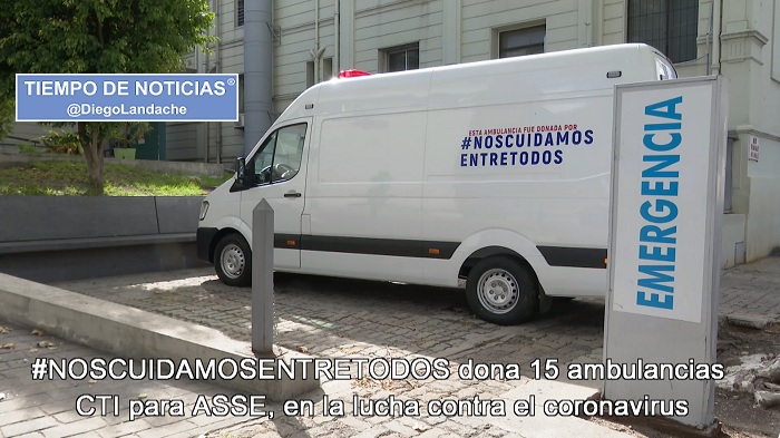 La ambulancia es la primera de un grupo que se entregarán en las próximas semanas. Los vehículos, aún sin estrenar, están totalmente equipados para funcionar como un CTI móvil con los requerimientos establecido por el Ministerio de Salud Pública. El grupo de empresarios lleva recaudados 4,5 millones de dólares desde que inició sus actividades, el 19 de marzo, y continuará hasta que la situación esté solucionada, explicó. Hasta ahora hay 140 empresas y más de 2.000 personas que aportan.