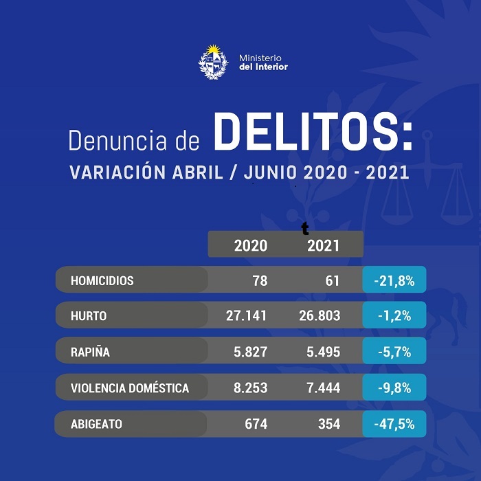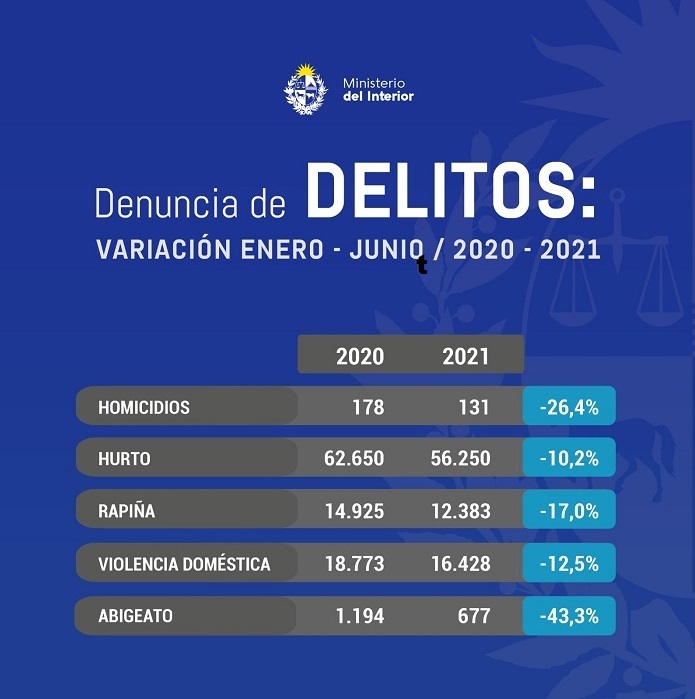 Tiempo de Noticias – De acuerdo a datos del Ministerio del Interior divulgados en las últimas horas, en el primer semestre del año bajaron las cifras del delito en todo el territorio nacional. Aquí el informe oficial.-