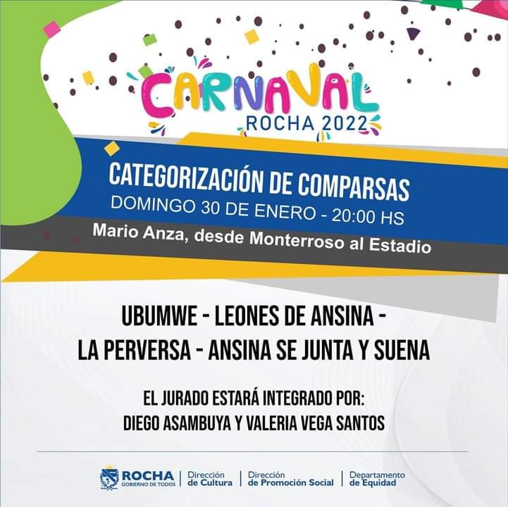 Este domingo 30 de enero se llevará adelante la categorización de comparsas para el próximo Carnaval en la ciudad de Rocha.