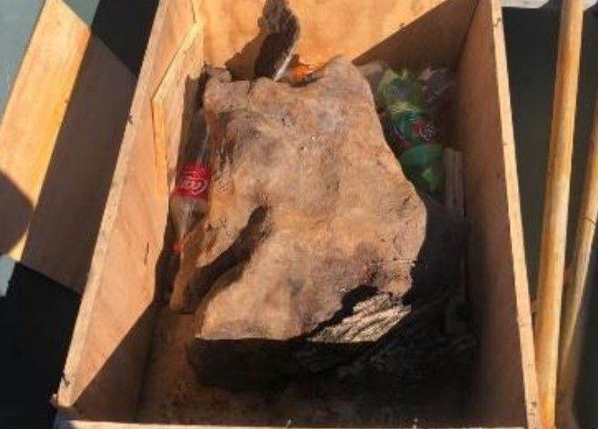 La Prefectura del Puerto de Paysandú se dirigió al lugar y dio con la embarcación, que tenía un tráiler. En él encontraron una caja cerrada. Se hizo una inspección y se constató que contenía una roca «de gran tamaño y peso» que fue trasladada a la Facultad de Ciencias para que la analizaran.