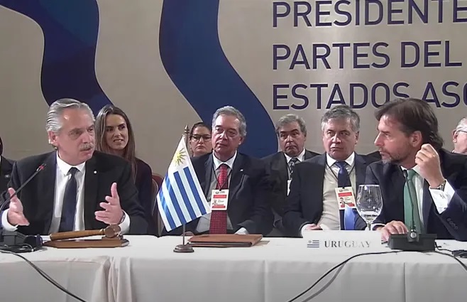 Al finalizar la Cumbre del Mercosur Alberto Fernández tomó la palabra y le habló directamente a Lacalle Pou. Reconoció que la normativa del Mercosur «es dura» y habló de revisarla.