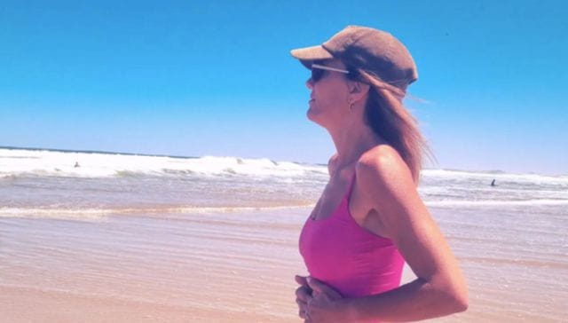 La comunicadora subió un video de su estadía en la playa de Los Botes, acompañada de una secuencia de fotos mirando hacia el horizonte, con el mar de fondo, gorro, gafas de sol y un trikini de color fucsia.