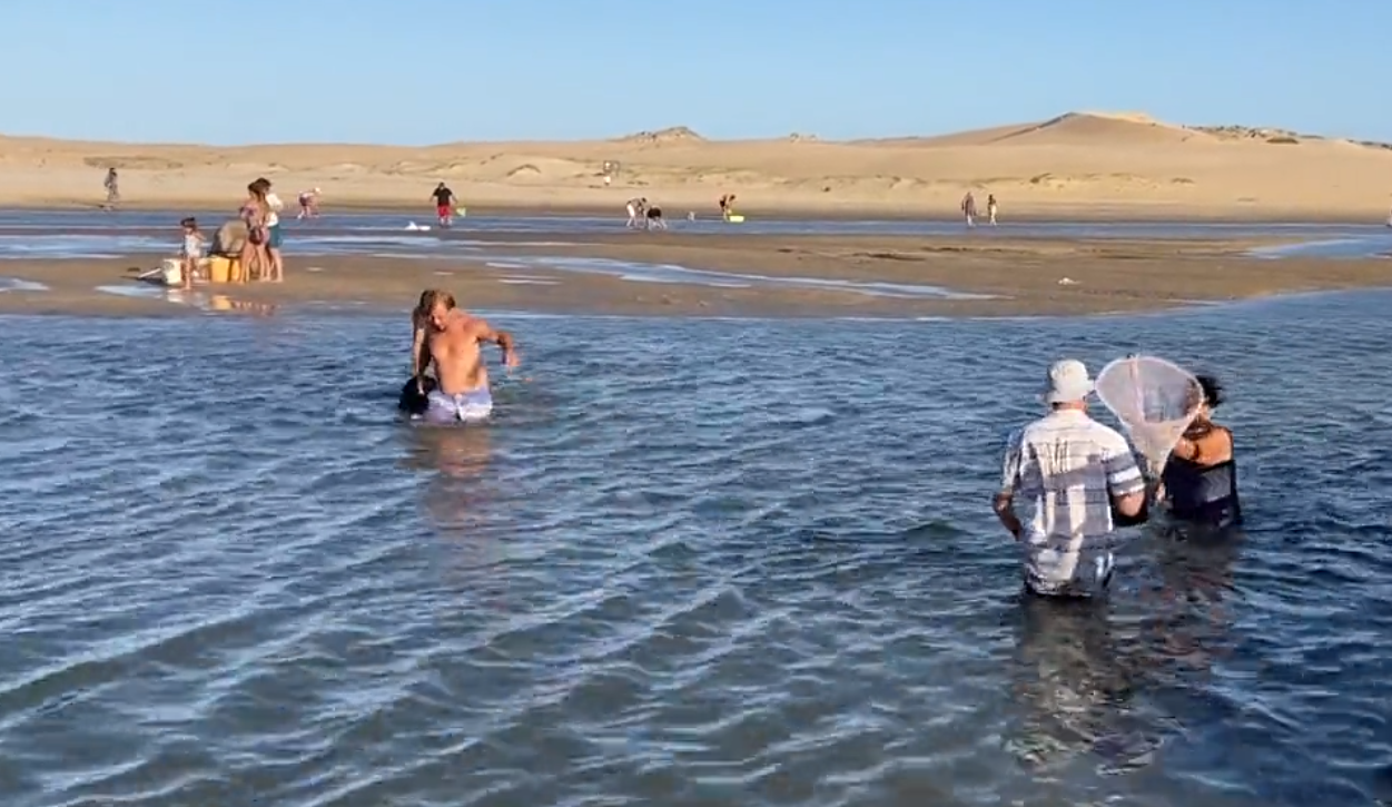 Cientos de turistas y pobladores locales participan de la pesca masiva de camarones en la Barra de Valizas