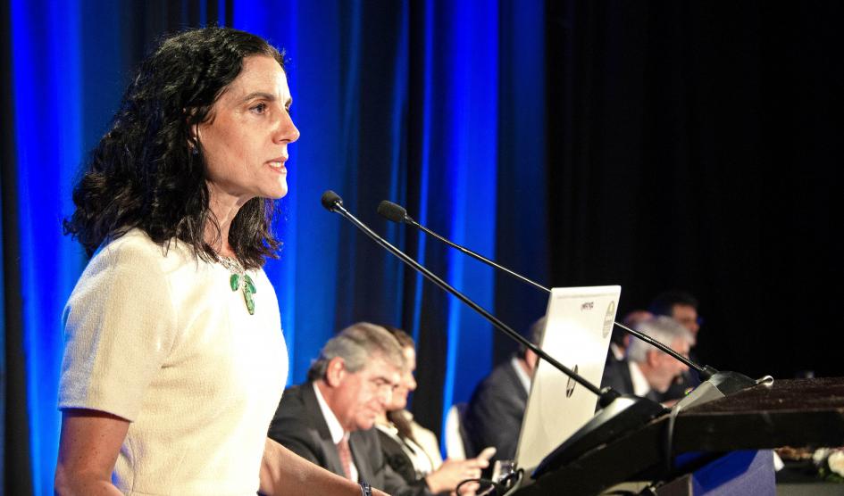 Arbeleche estuvo acompañada en la mesa principal por el subsecretario de la cartera, Alejandro Irastorza; la directora de Política Económica, Marcela Bensión; el director general de Secretaría, Mauricio Di Lorenzo; el director de Finanzas Públicas, Fernando Blanco, y el secretario general de ADM, Enrique Giner.