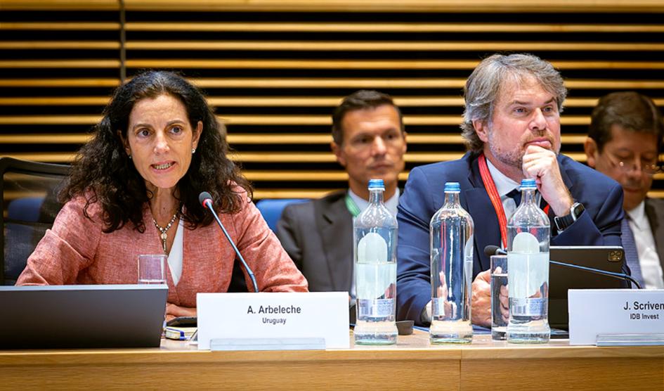 En su segunda intervención, Arbeleche señaló que Uruguay trabaja para poder utilizar los incentivos financieros positivos y estimular a que los países apliquen políticas sustentables, para poder integrarlos a la reconversión verde como parte de sus estrategias de desarrollo.