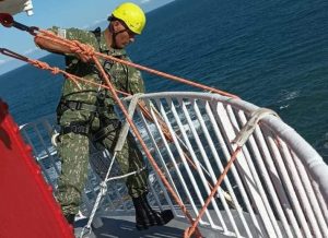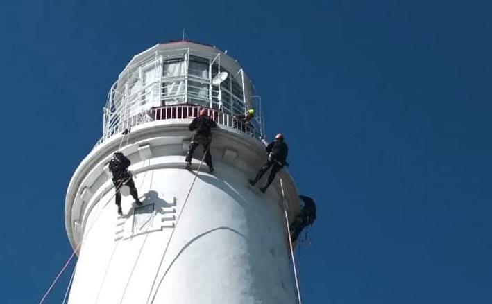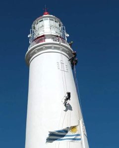 Personal del Comando de Infantería de Marina especializado en técnicas para trabajos en alturas, en conjunto con el Servicio de Iluminación y Balizamiento de la Armada (SERBA), llevó a cabo labores de mantenimiento y pintura del Faro del Cabo de Santa María, situado en el Departamento de Rocha, La Paloma.