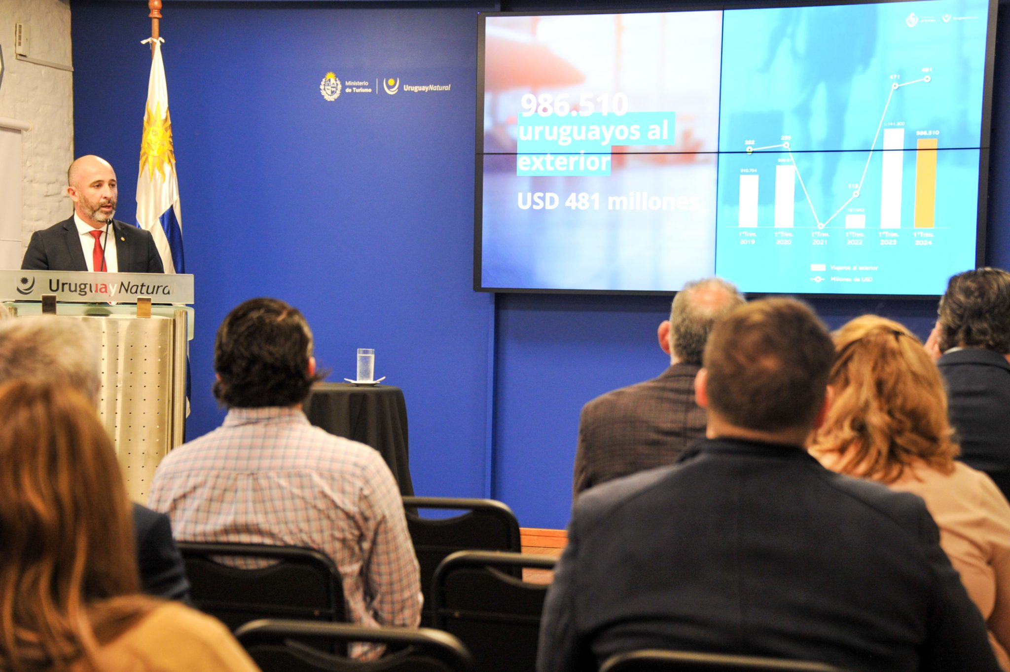 La presentación de los datos estadísticos correspondientes al primer trimestre del año 2024 fue realizada, este martes 16, en la sede de la secretaría de Estado, con la participación del director general de Secretaría, Ignacio Curbelo, y el director nacional de Turismo, Roque Baudean, entre otras autoridades nacionales y departamentales.