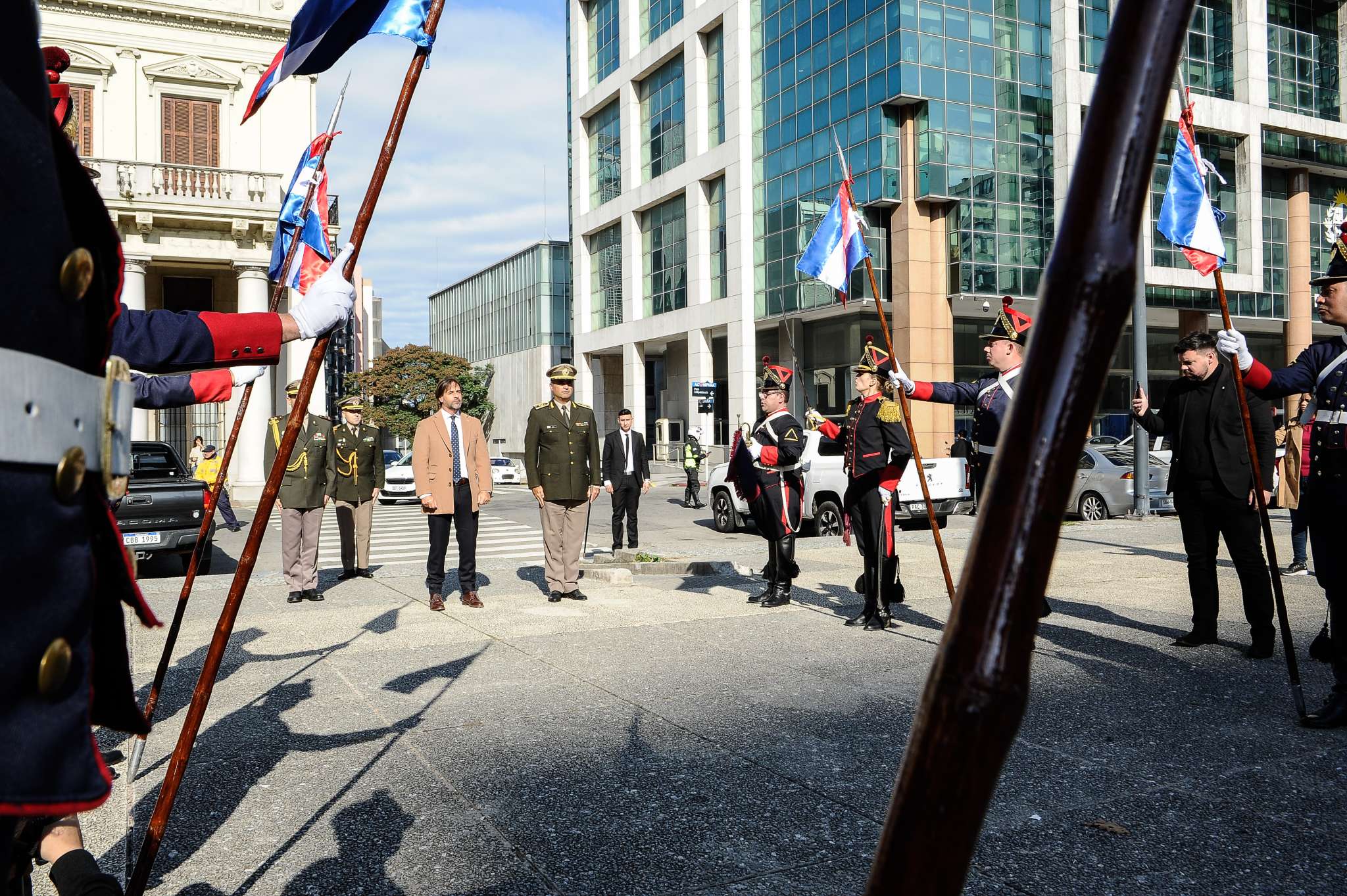 En horas de la mañana, Lacalle Pou estuvo presente en la plaza Independencia, donde se erige el monumento a José Gervasio Artigas, al pie del cual depositó una ofrenda floral, en homenaje al prócer oriental, nacido el 19 de junio de 1764, fecha de la que se conmemoraron este miércoles 260 años.