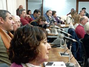 Posteriormente, la temática se centró en el motivo clave del llamado a sala: la controversial obra del enrocado del balneario de Costa Azul, ubicada entre el Cerro de La Virgen y el Hotel frente a la playa, camino al balneario de Arachania y La Pedrera.