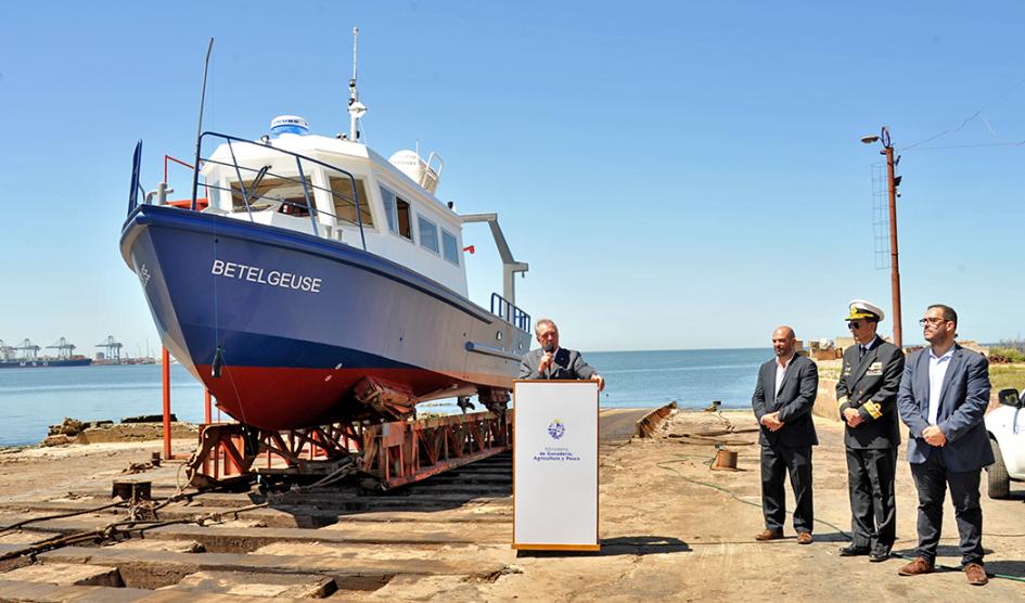En la ceremonia, el titular del MGAP estuvo acompañado del subsecretario Juan Ignacio Buffa, y el director nacional de Recursos Acuáticos, Álvaro Irazoqui. También asistieron representantes de la Armada Nacional, del cuerpo diplomático, del ámbito marítimo-portuario y de la empresa que diseñó y fabricó la embarcación.