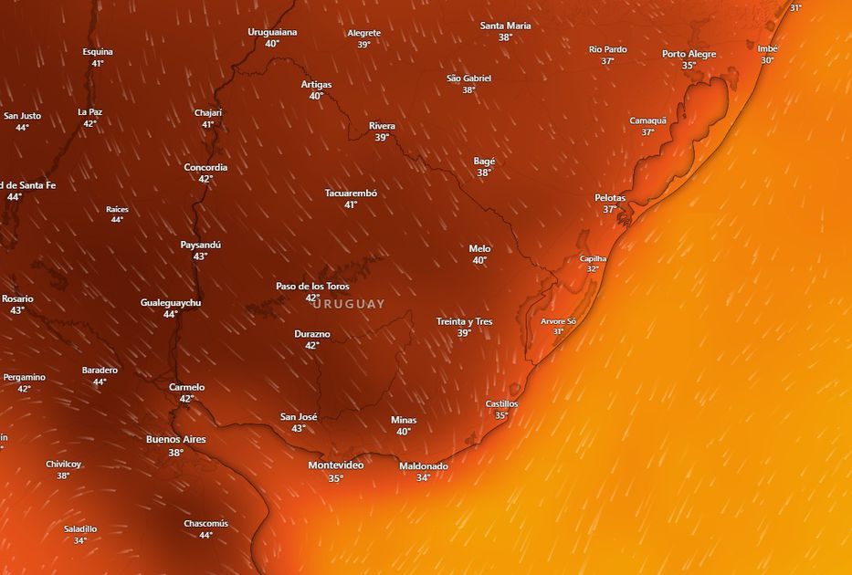 Similar es lo proyectado por el Instituto Uruguayo de Meteorología (Inumet), que adelanta una máxima nacional de 39 grados el martes en Artigas, de acuerdo a Montevideo Portal.