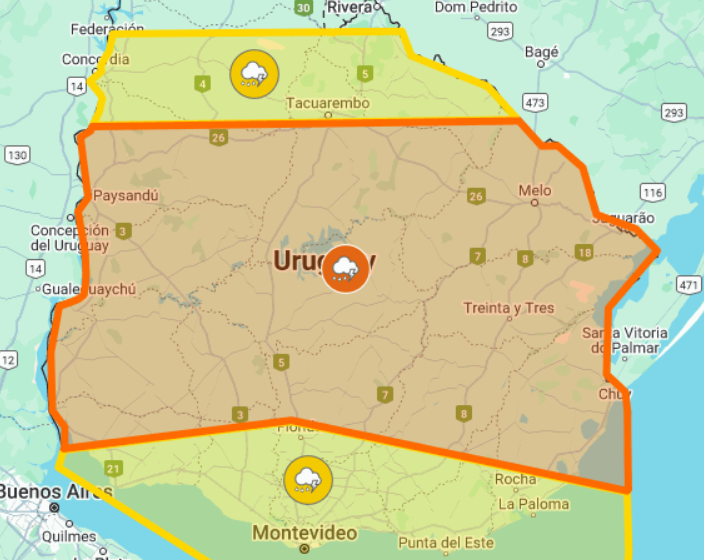 Esta situación se produce en el marco de un aviso especial emitido el lunes por el organismo, en el que adelantaba “fenómenos más significativos” con precipitaciones abundantes y tormentas fuertes al sur del río Negro, aunque con una mejora gradual por el suroeste en la madrugada del jueves.