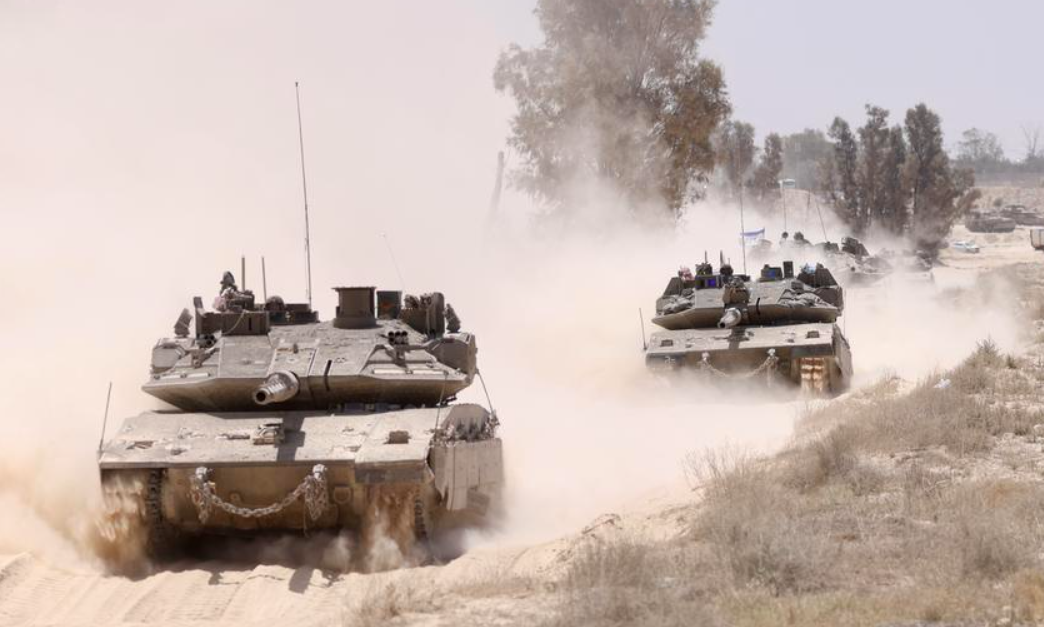 Foto: Tropas israelíes circulan cerca de la frontera sur de Israel con Gaza, el 20 de mayo de 2025. (Xinhua/Jamal Awad)