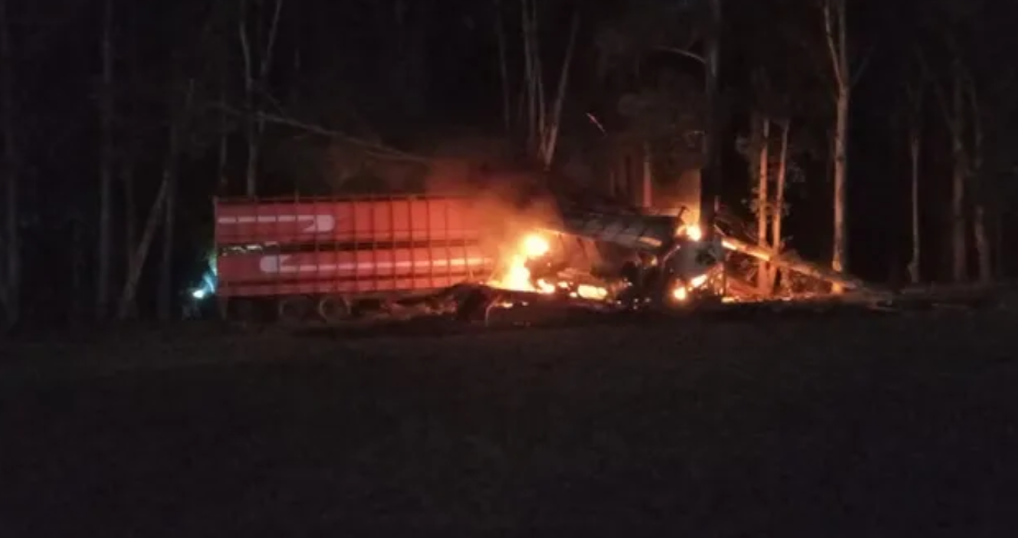 Según informó la Policía Caminera, el camión involucrado era una unidad con jaula de ganado que circulaba en dirección sur. Por razones que aún se investigan, el vehículo se salió de la ruta y quedó detenido sobre la faja natural del lado oeste. Instantes después del despiste, el camión se prendió fuego, y sus dos ocupantes —el conductor y su acompañante— quedaron atrapados en el habitáculo, sin posibilidad de escapar.