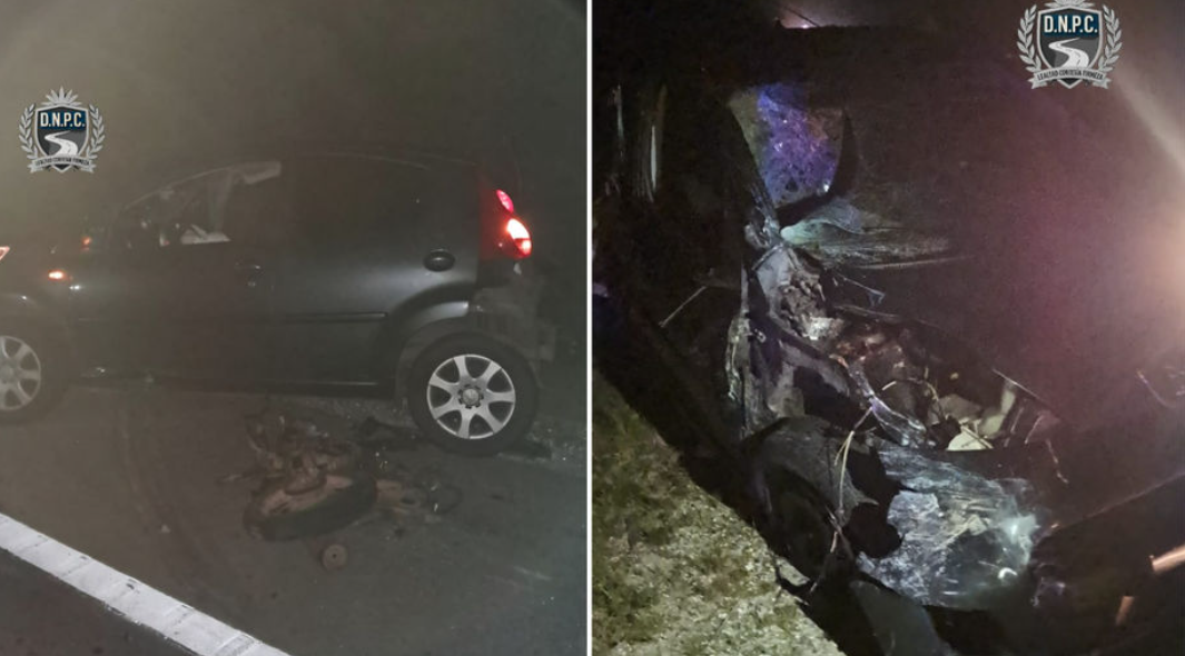 De acuerdo con la información proporcionada por Policía Caminera, el accidente se produjo cuando un automóvil que circulaba de este a oeste intentó realizar una maniobra de adelantamiento. En ese momento, invadió el carril contrario e impactó frontalmente contra una moto que venía en sentido opuesto.
