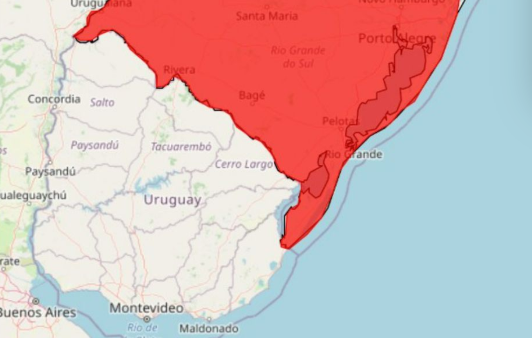 Tiempo de Noticias – El Instituto Nacional de Meteorología (Inmet) de Brasil emitió una alerta roja —nivel máximo de riesgo— para el sur del país, una situación que genera especial atención en la frontera con Uruguay, particularmente en zonas como Chuí y el este del departamento de Rocha.