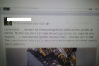 Comentarios violentos y racistas por parte de un oficial principal genera rechazo del Sindicato Policial