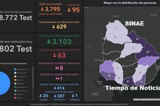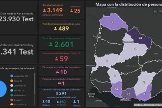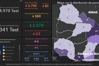 Uruguay registra 489 casos activos de COVID-19 distribuidos en 10 departamentos