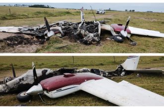Qué pasó…Cayó avioneta de dos motores en una pista de un campo próximo a la localidad de Vergara