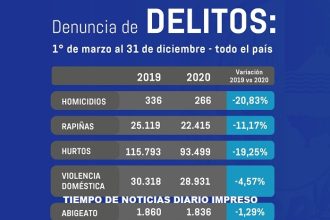 Cifras de delito en Uruguay: homicidios bajaron 20,83%; rapiñas descendieron 11,17% y hurtos cayeron 19,25%